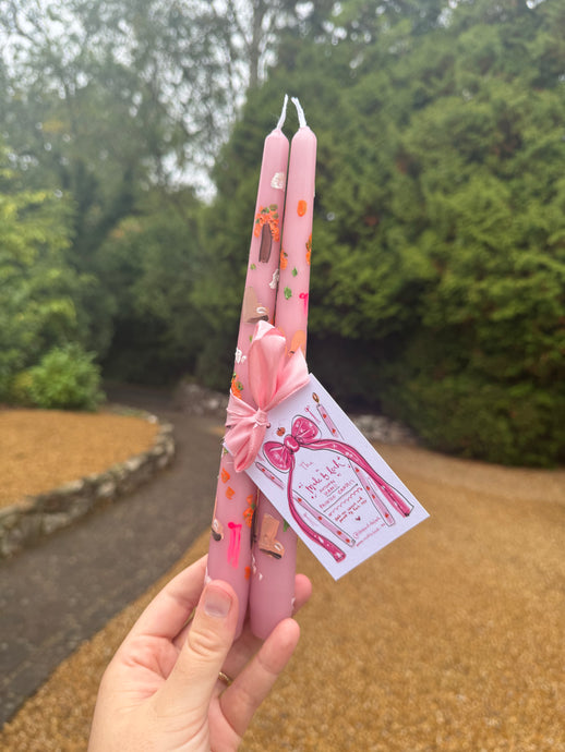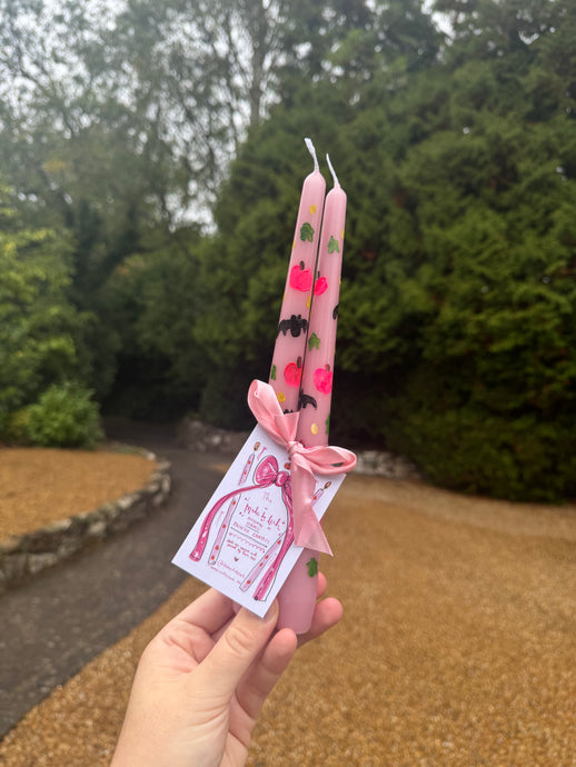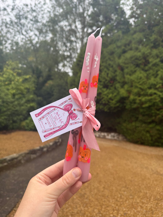 Hand Painted Candle Stick Duo “Bats and Pink Pumpkins”