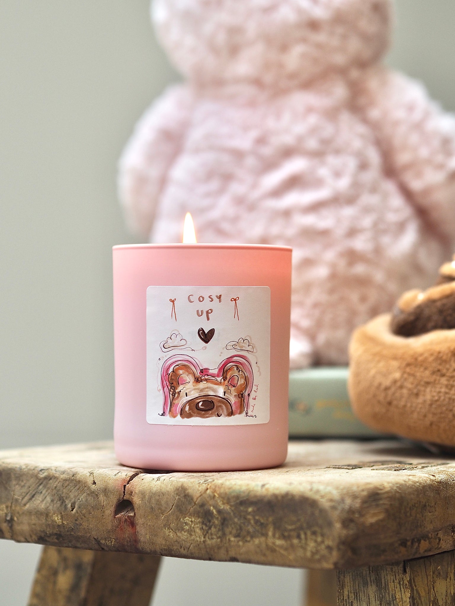 This candle comes in a presentation box with the same matching ‘cosy up’ bear sticker.