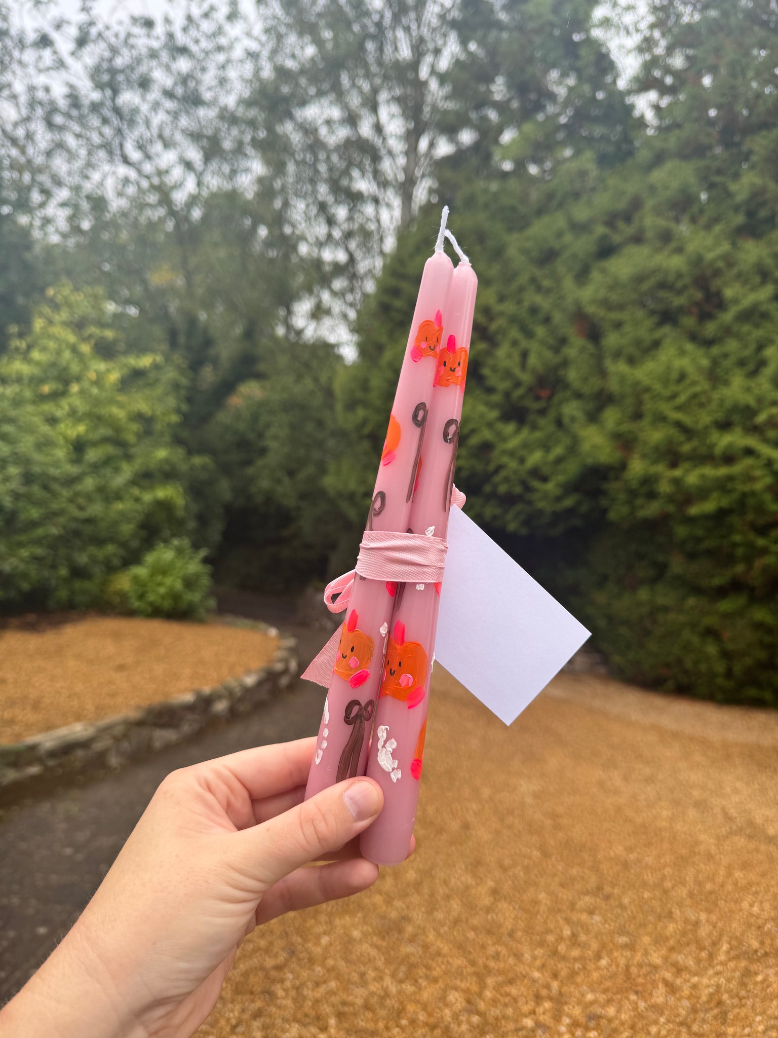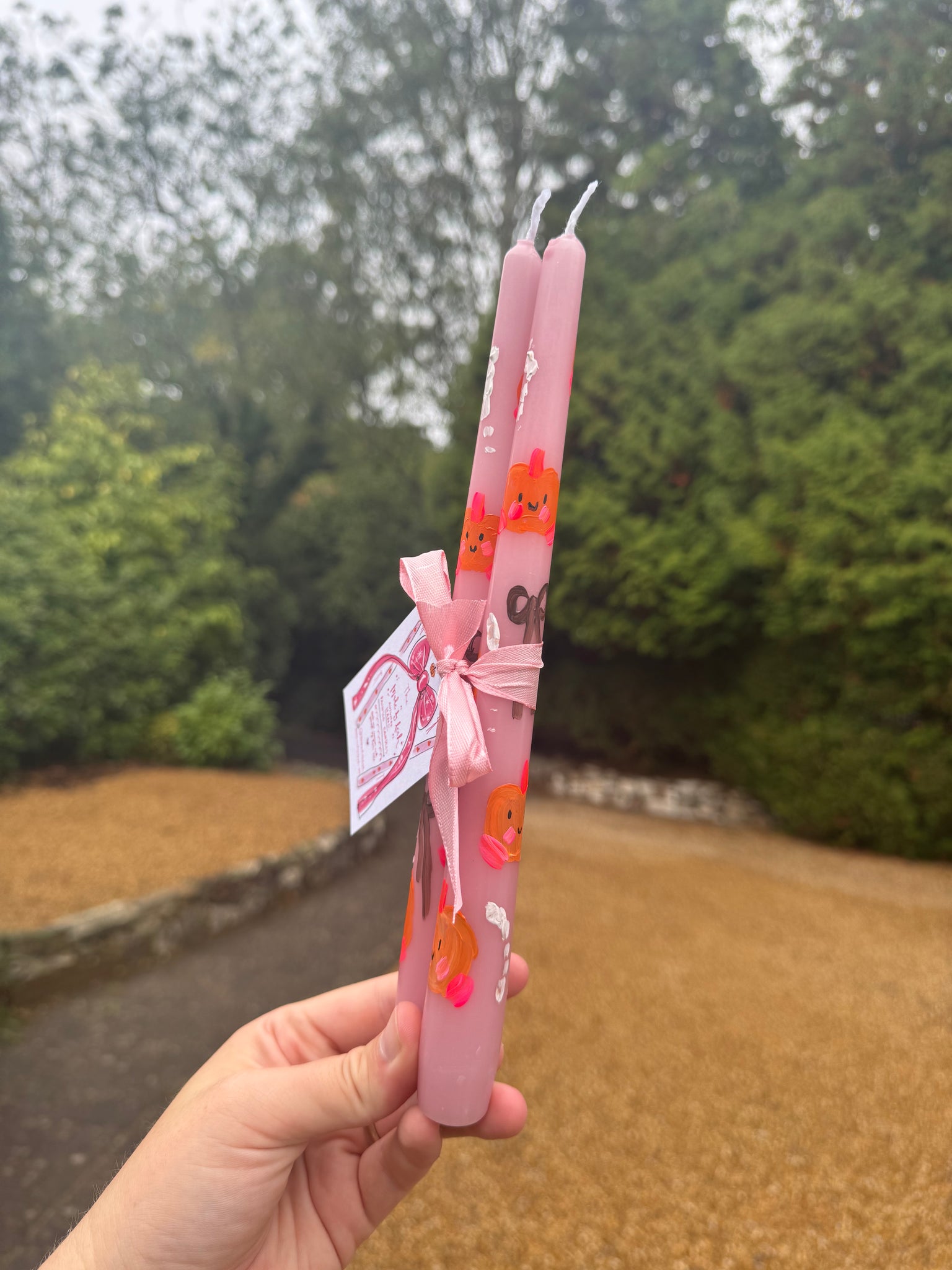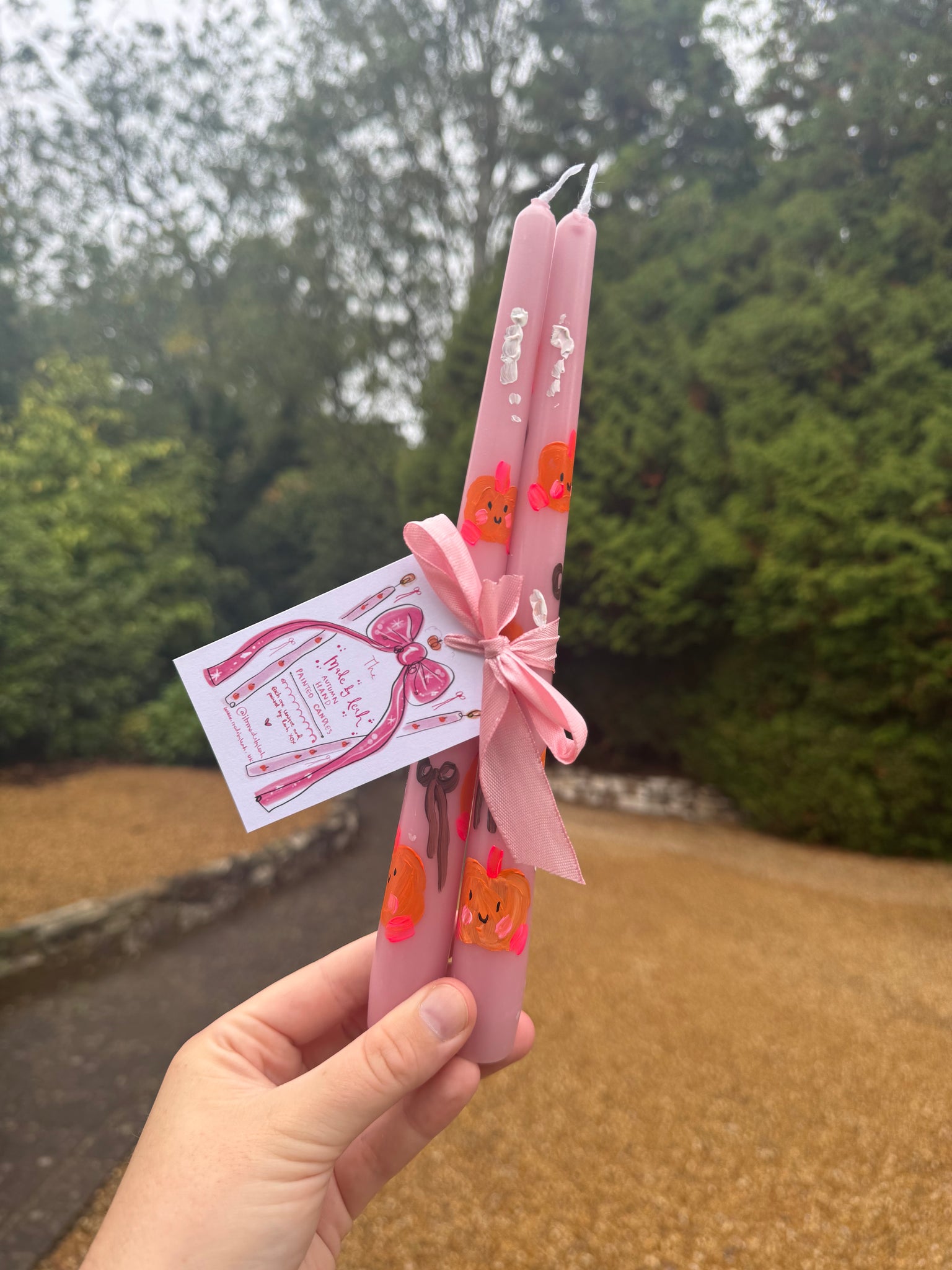 Perfect for an Autumnal table scape or decoration, these candles are hand painted by Leah and come in a duo.