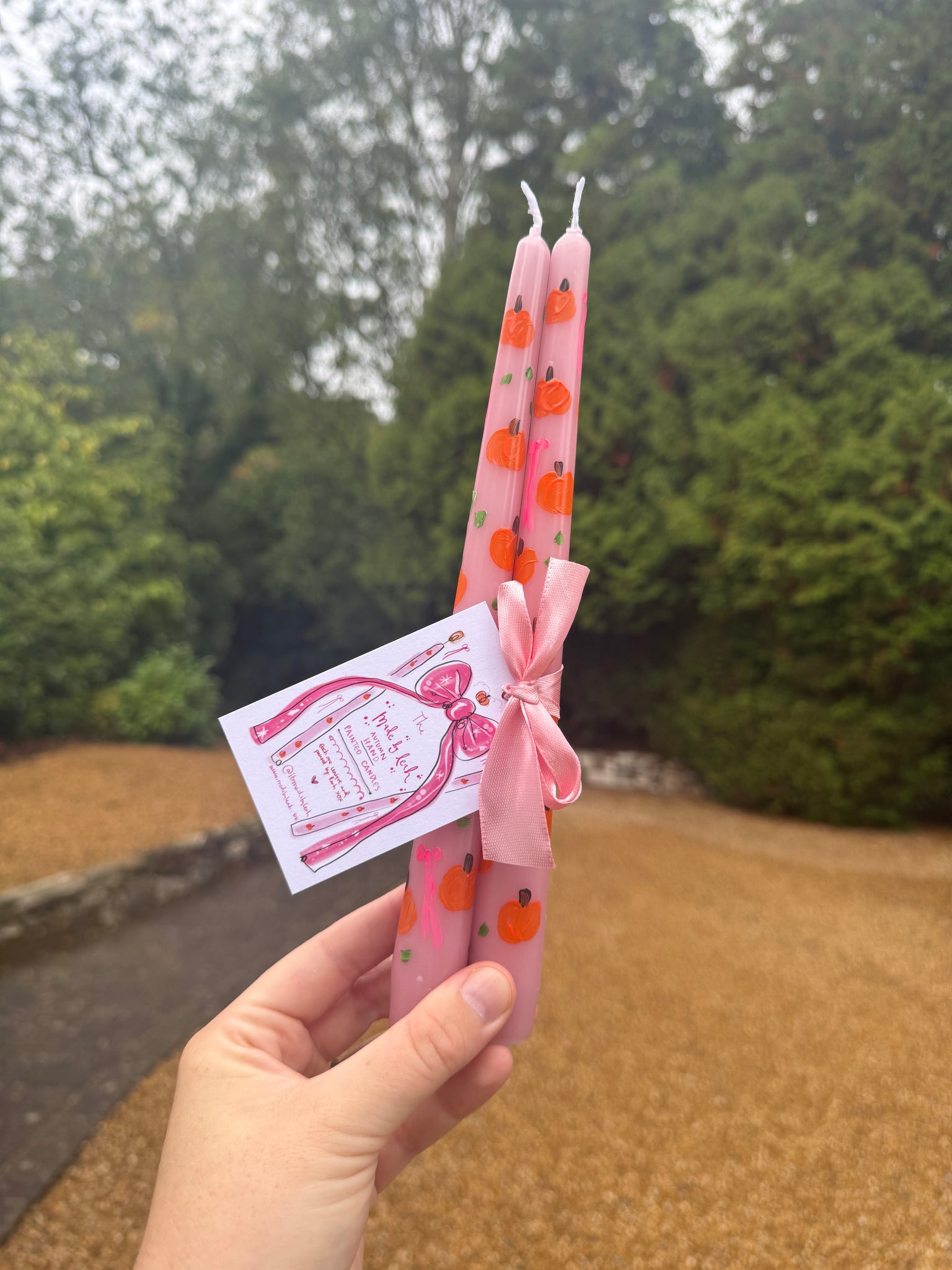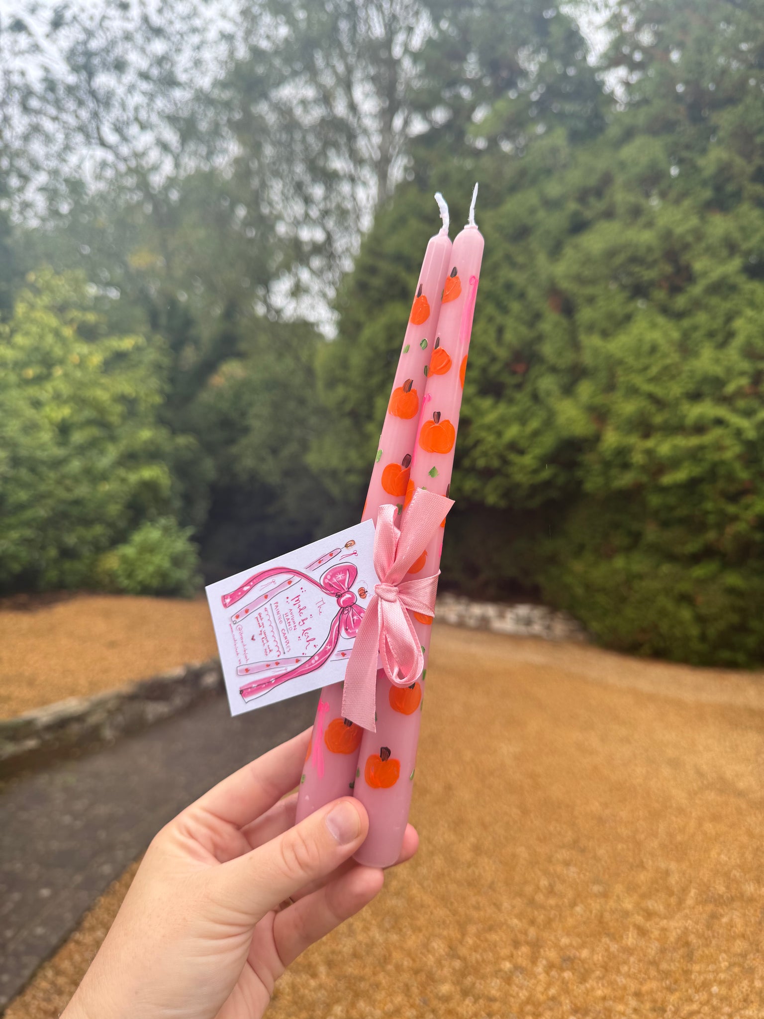 Perfect for an Autumnal table scape or decoration, these candles are hand painted by Leah and come in a duo.