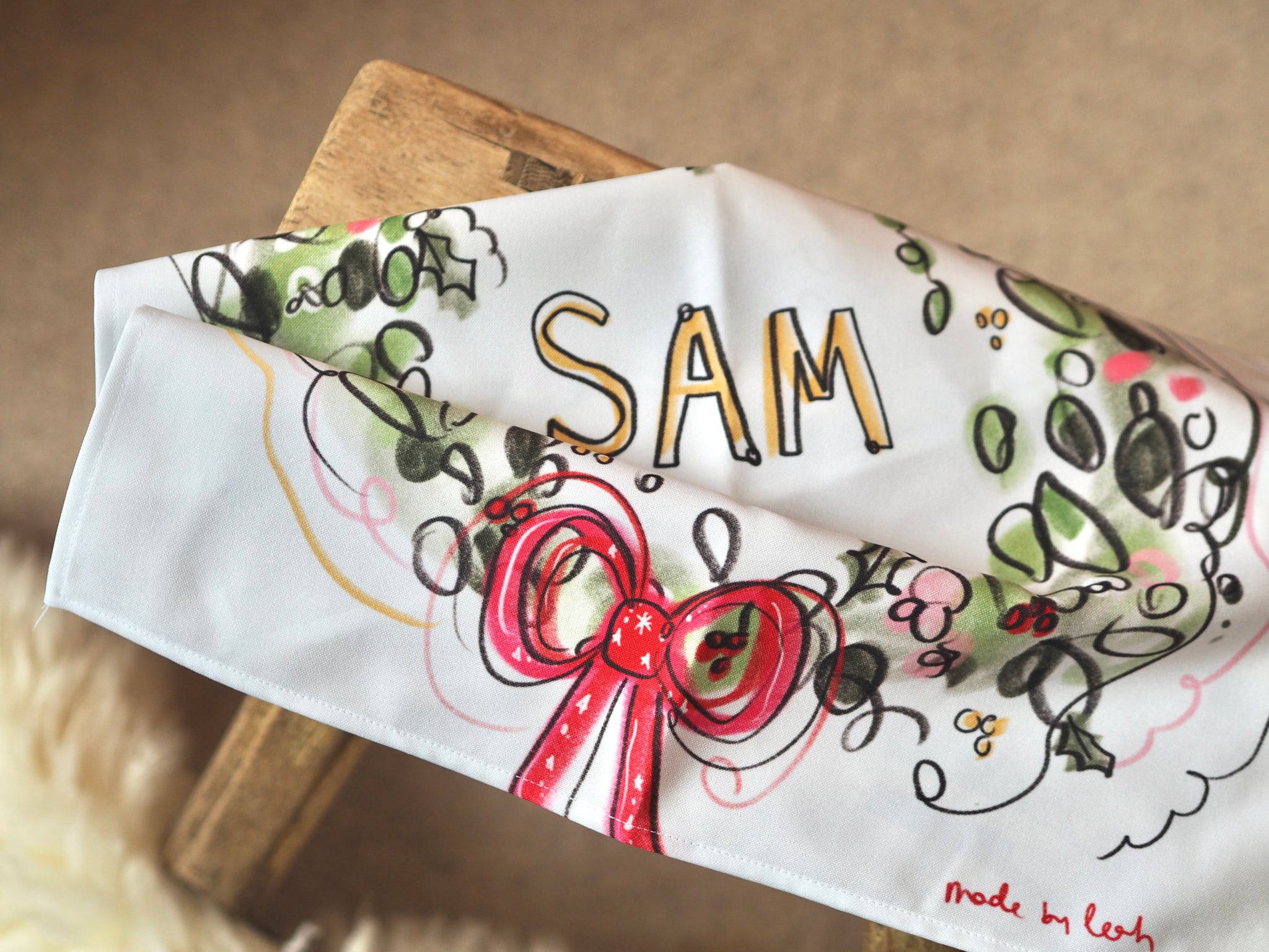 Add the name you’d like on each napkin in the notes section at the checkout! If you don’t leave a name, your napkin will just have the design on filling the napkin.