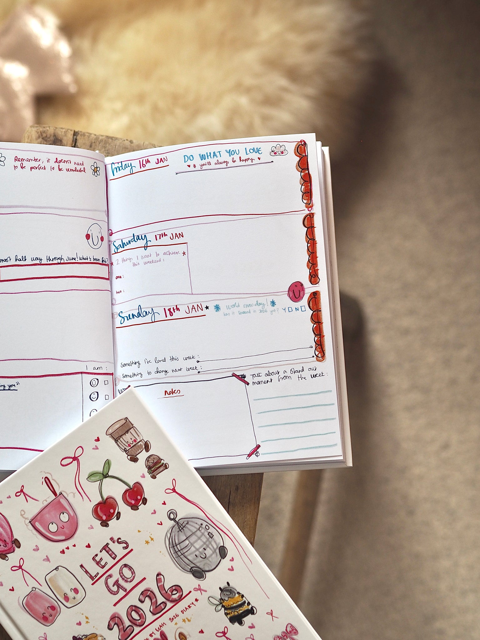 Every year it gets better and better, and this version is no exception. It’s been updated for 2026 with extra pages and even more space for note taking, lists and journal sections. It’s my favourite yet and each page is hand crafted with so much care from illustrations to doodles to wording to space for you. It’s the perfect journal diary for your mood, positives and daily spaces.