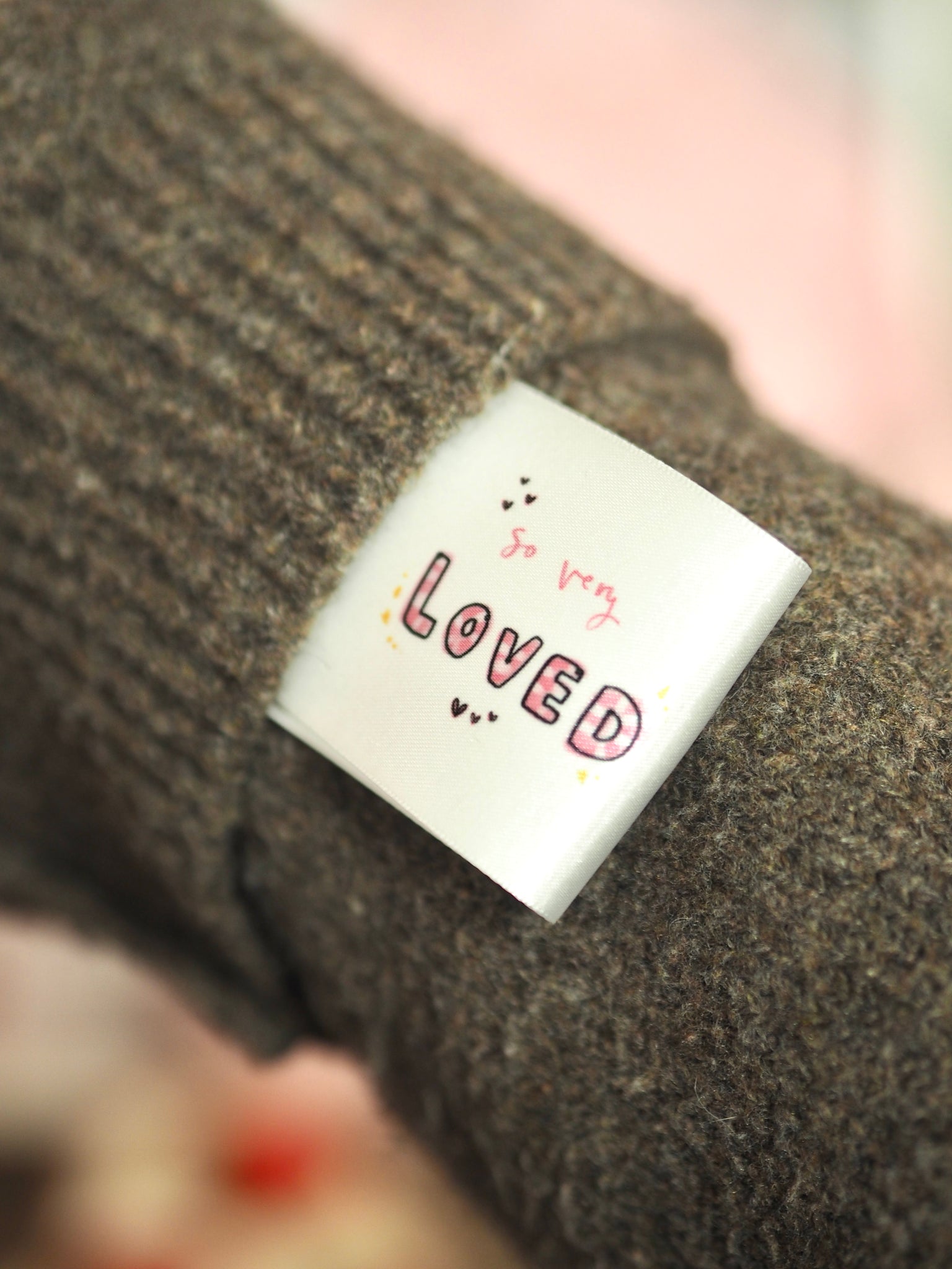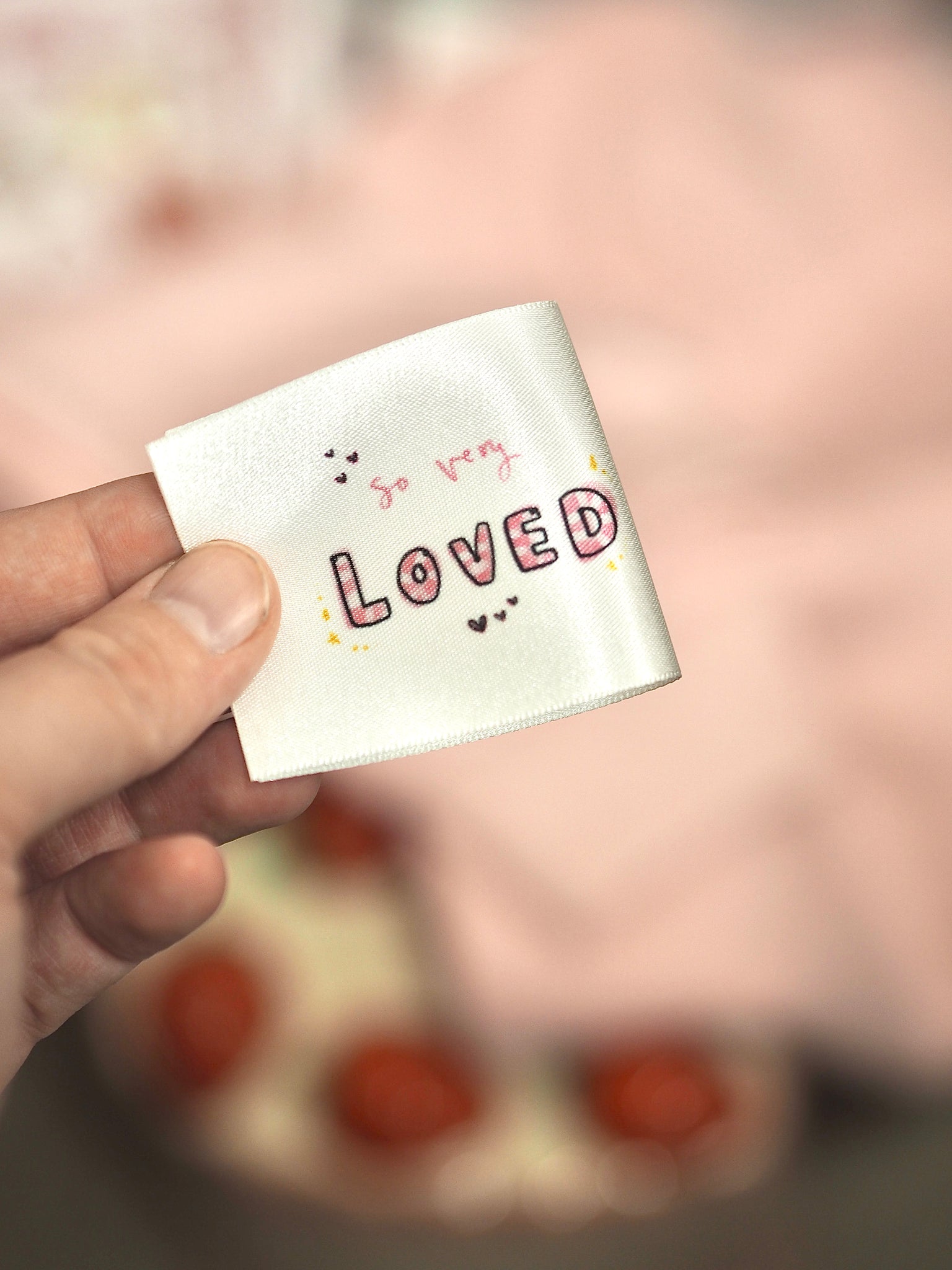 A 50x50 fabric label with no Frey edges, this label is a perfect sew on to clothing or accessories to remind someone they are loved. Full colour Made by Leah print on the front AND back. Showing the so loved wording on one side and bunnies on the other.