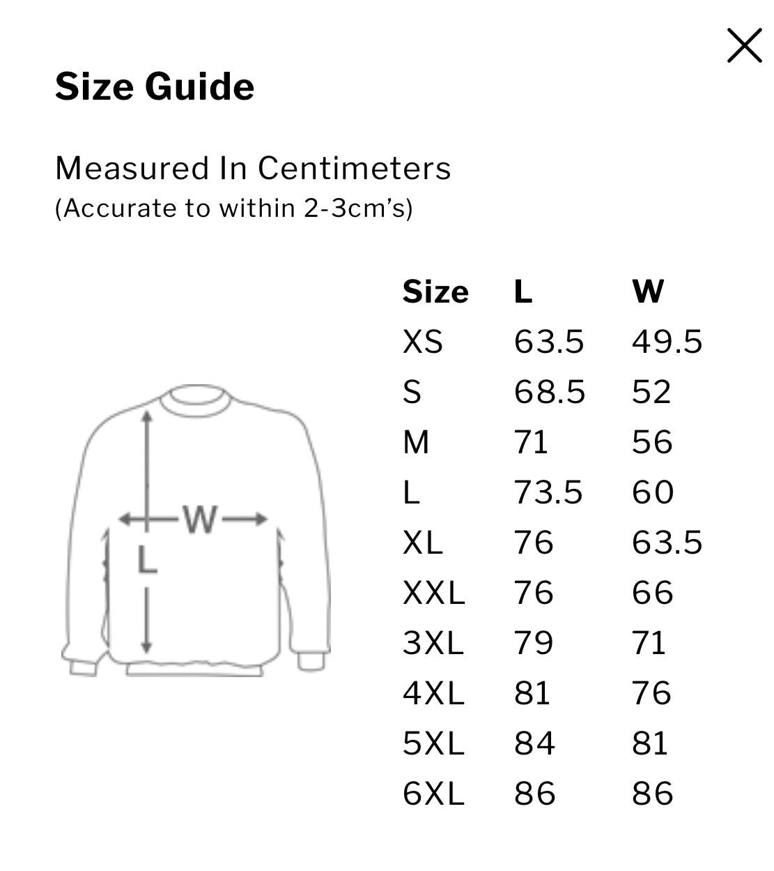 Please size up if you want your fit to be baggy and oversized. For reference Leah wears a 3XL and is a size 16. Exact sizing is shown as a photo in the slideshow.