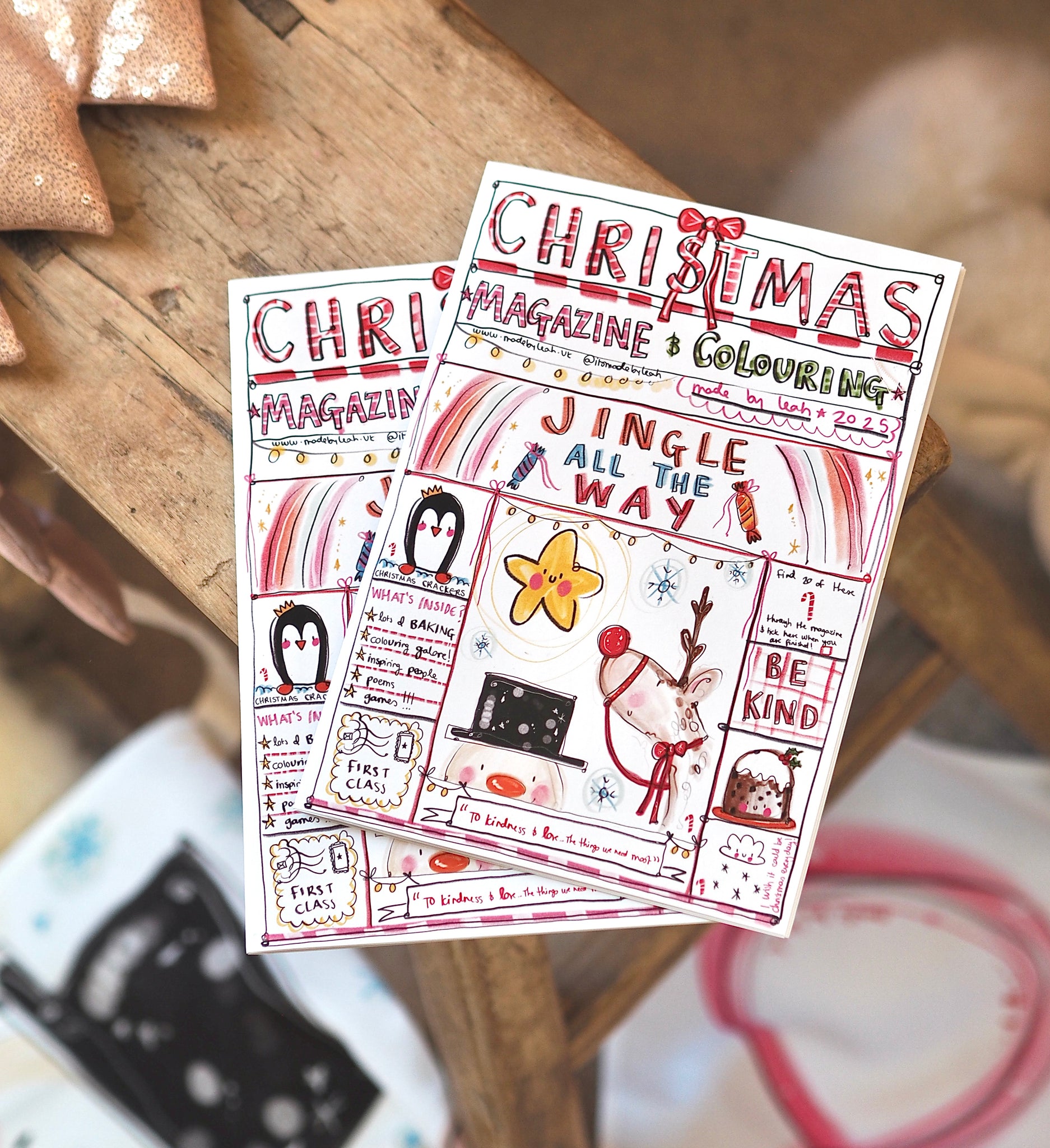 This years Christmas magazine is taking inspiration from the success of the 2024 magazine- it’s colour me in! But this time, I’ve added even more pages for you. Same unique style, same fun pages, too- but extra colouring pages!