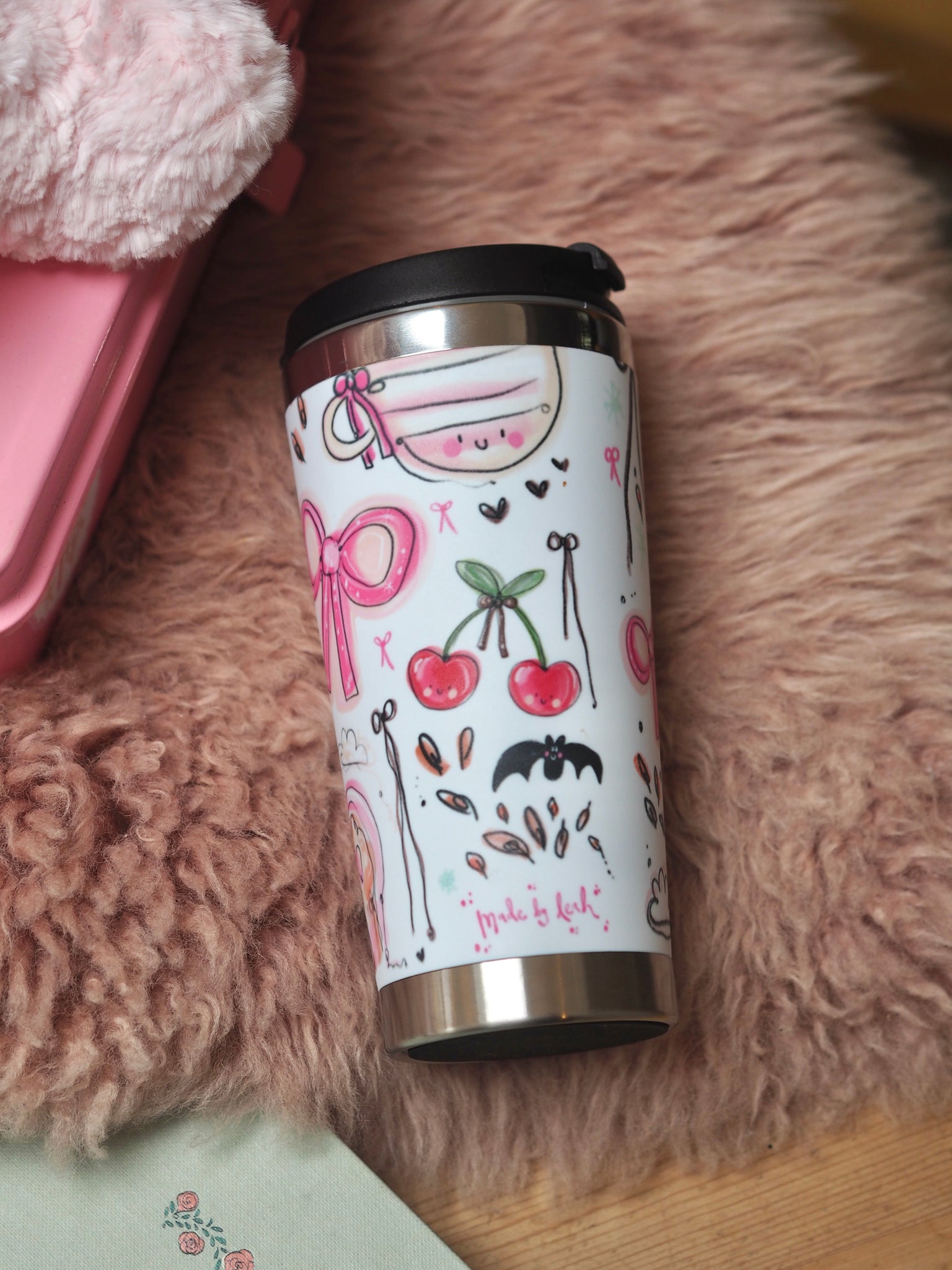 Perfect for hot drinks as well as cold drinks, this one has a sturdy screw on lid and is perfectly insulated to keep drinks warm!