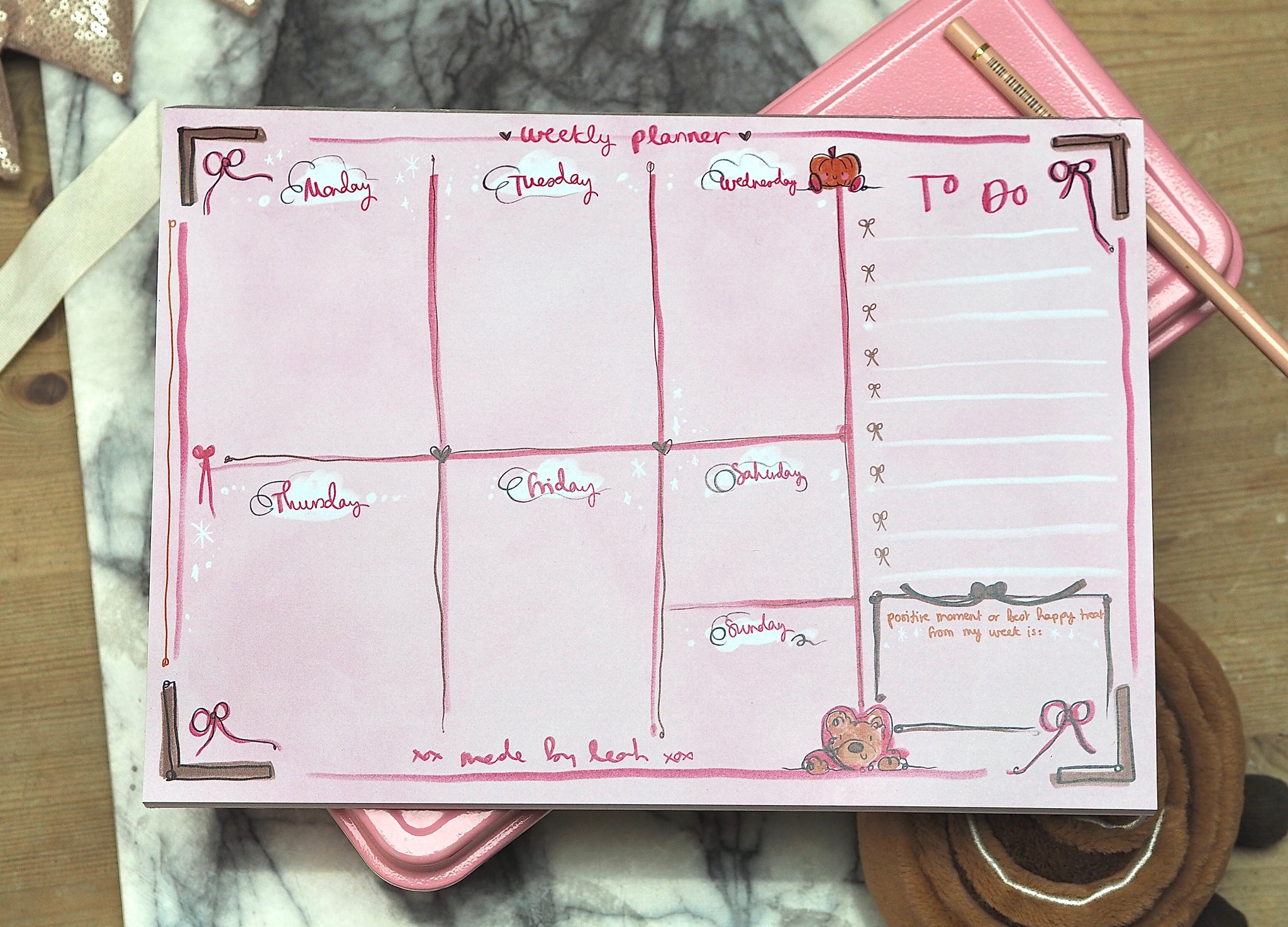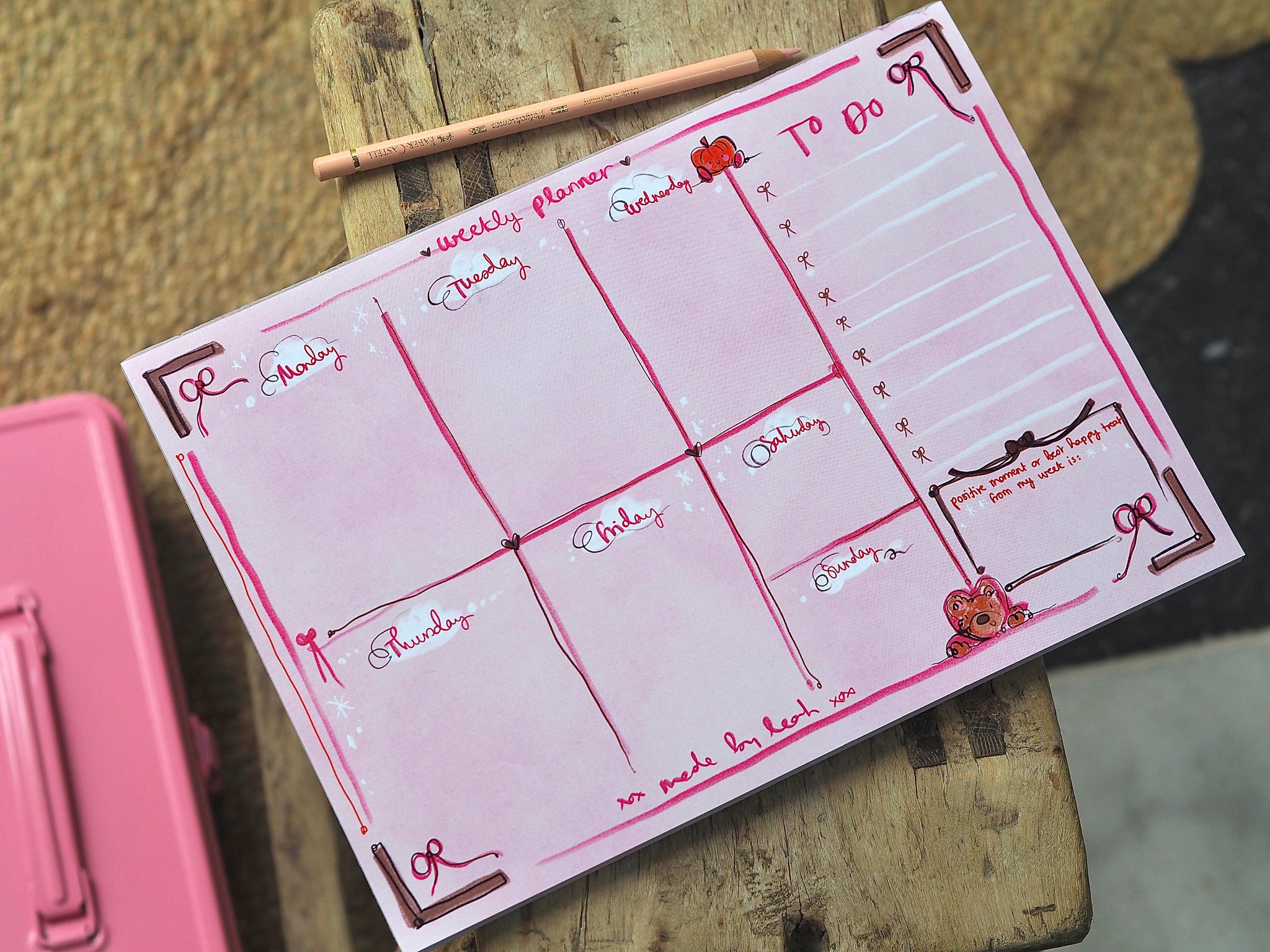 It's the true made by Leah stationery product and a must have for any desk or bedside. The true weekly planner and happy pad merged into one!
