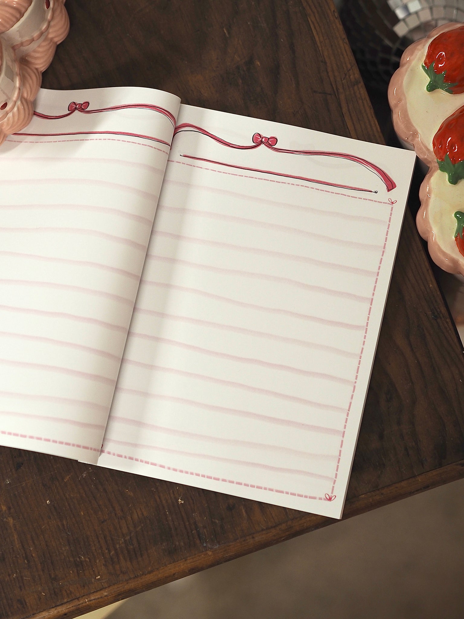 Perfectly bound, the most amazing finish, I designed the inside to be clever and suit the lined paper girlies and the plain ones by doing faint pink lines to suit writing along or drawing over (because I have to support the doodle lovers!)