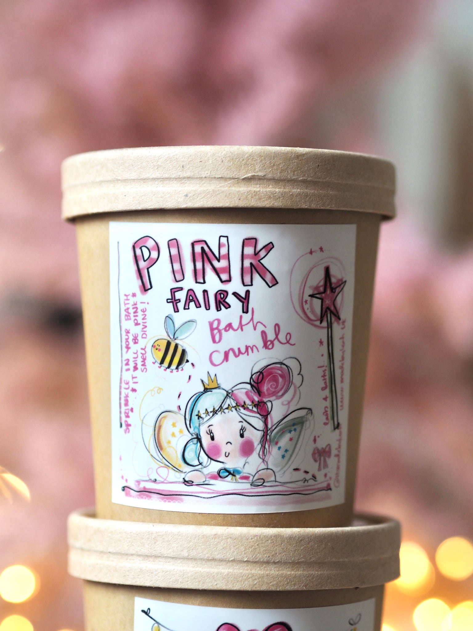 This is a tub of my favourite ‘Fizzy by Issy’ bath crumble. Complete with Made by Leah stickers with 240g pink crumble inside the recycled brown tub.
