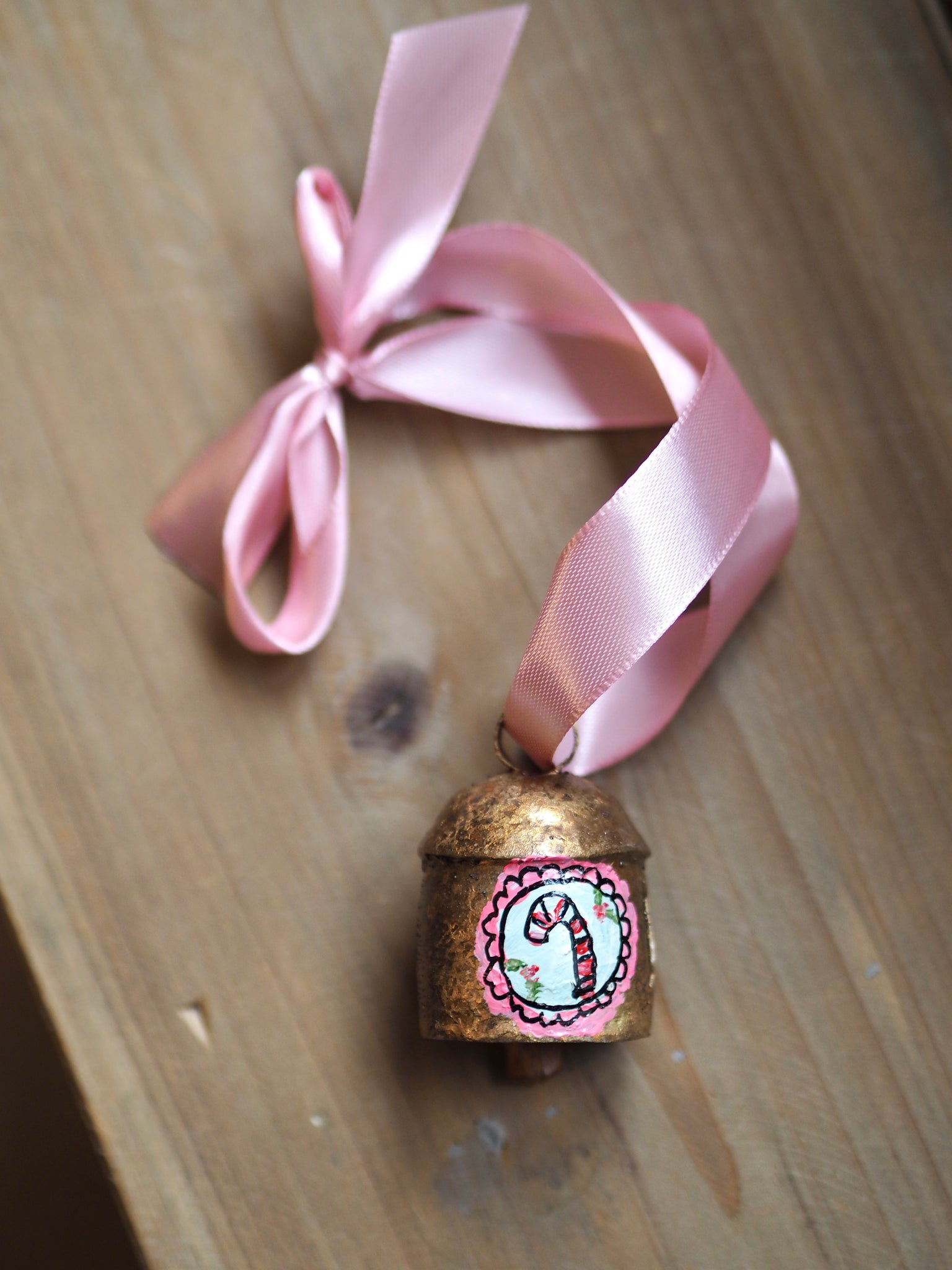Hand Painted Brass Bell 4 ‘Candy Cane Lane’