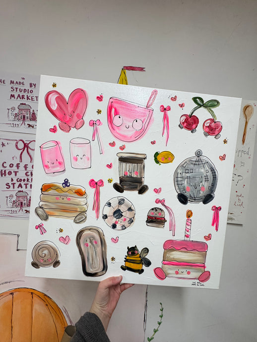 60x60cm XL Hand Painted Box Canvas “Cute Doodles”