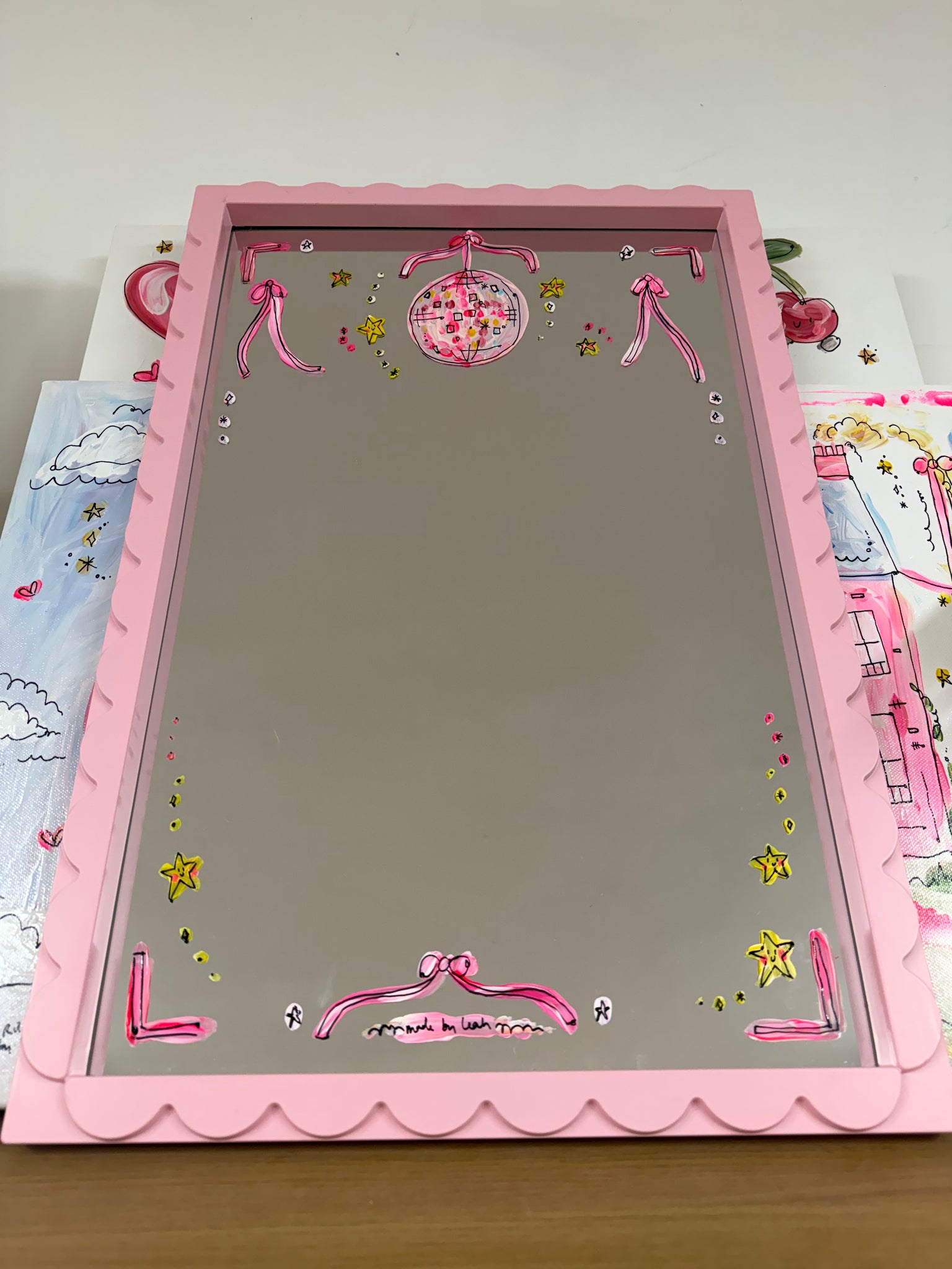Each mirror is painted by Leah through January, each will be available on February 1st at 7pm!