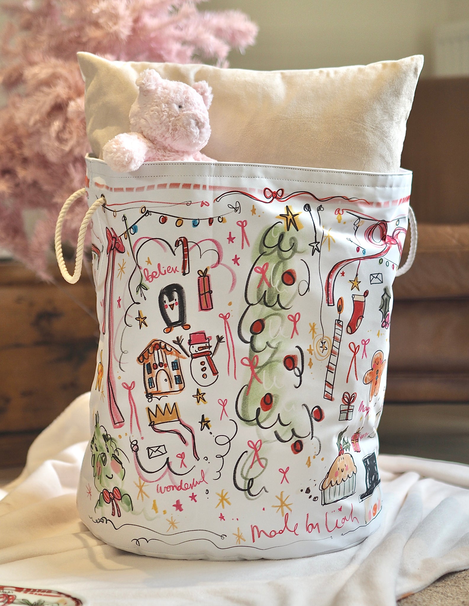 This is the perfect Christmas gift and storage solution, but in the most gorgeous colours and illustrations by Leah! For Christmas presents, toys in a bedroom or for those runaway toys in any room, or the perfect blanket storage!